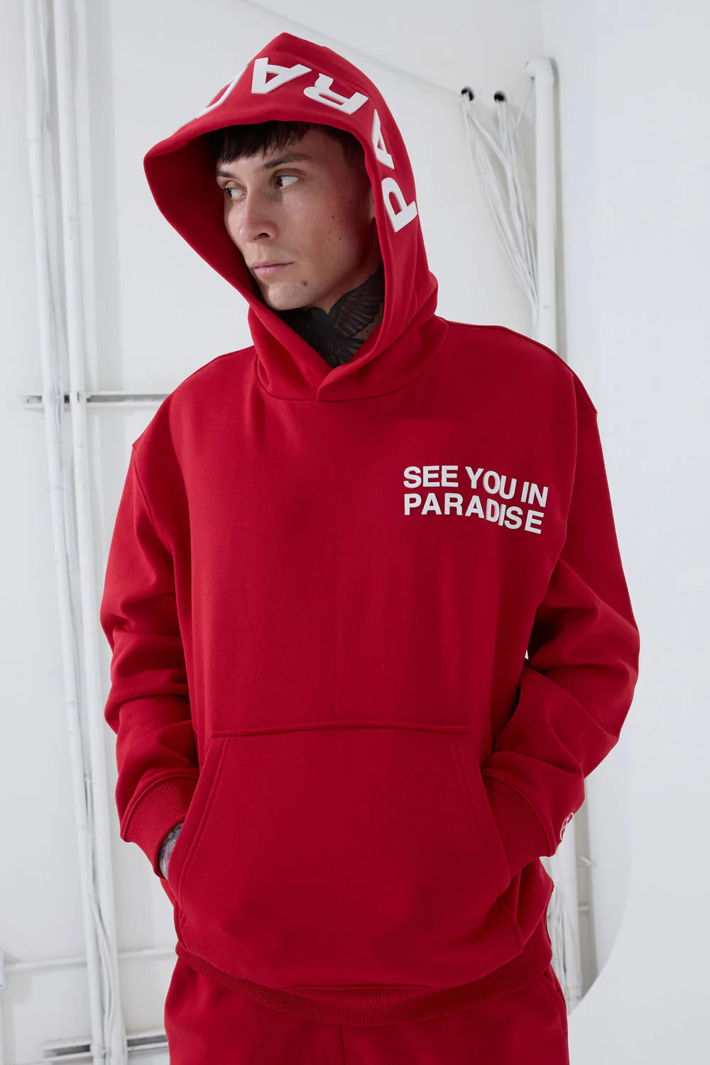 • Tonal high density print on front chest and hood