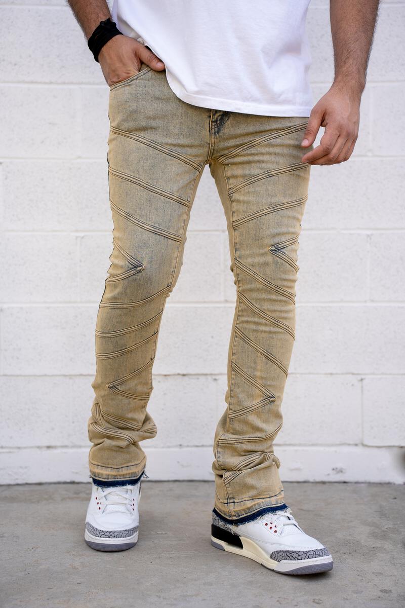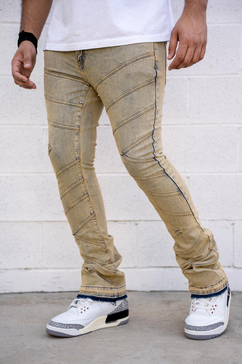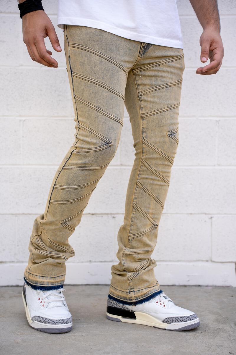 Adonis Stacked Premium Denim (Tan Blue)