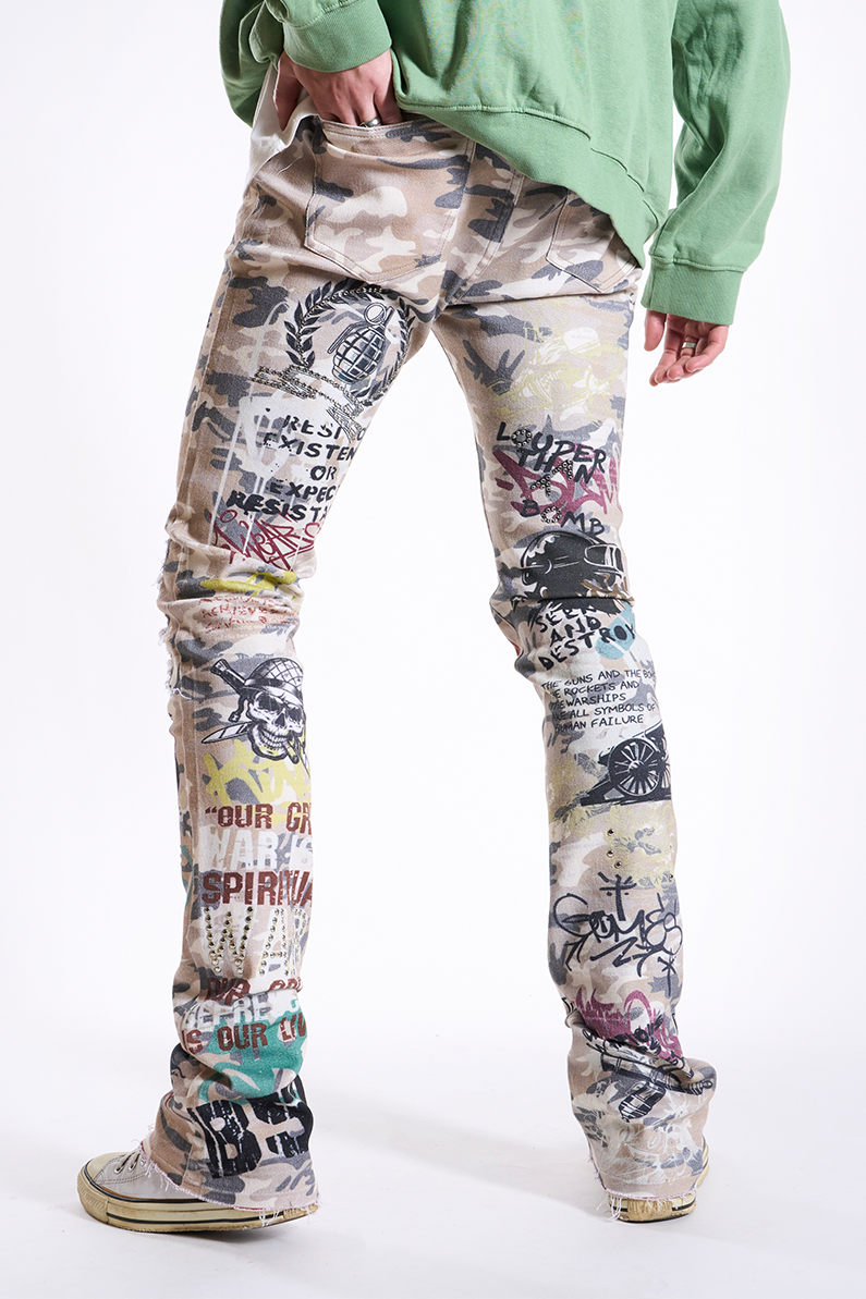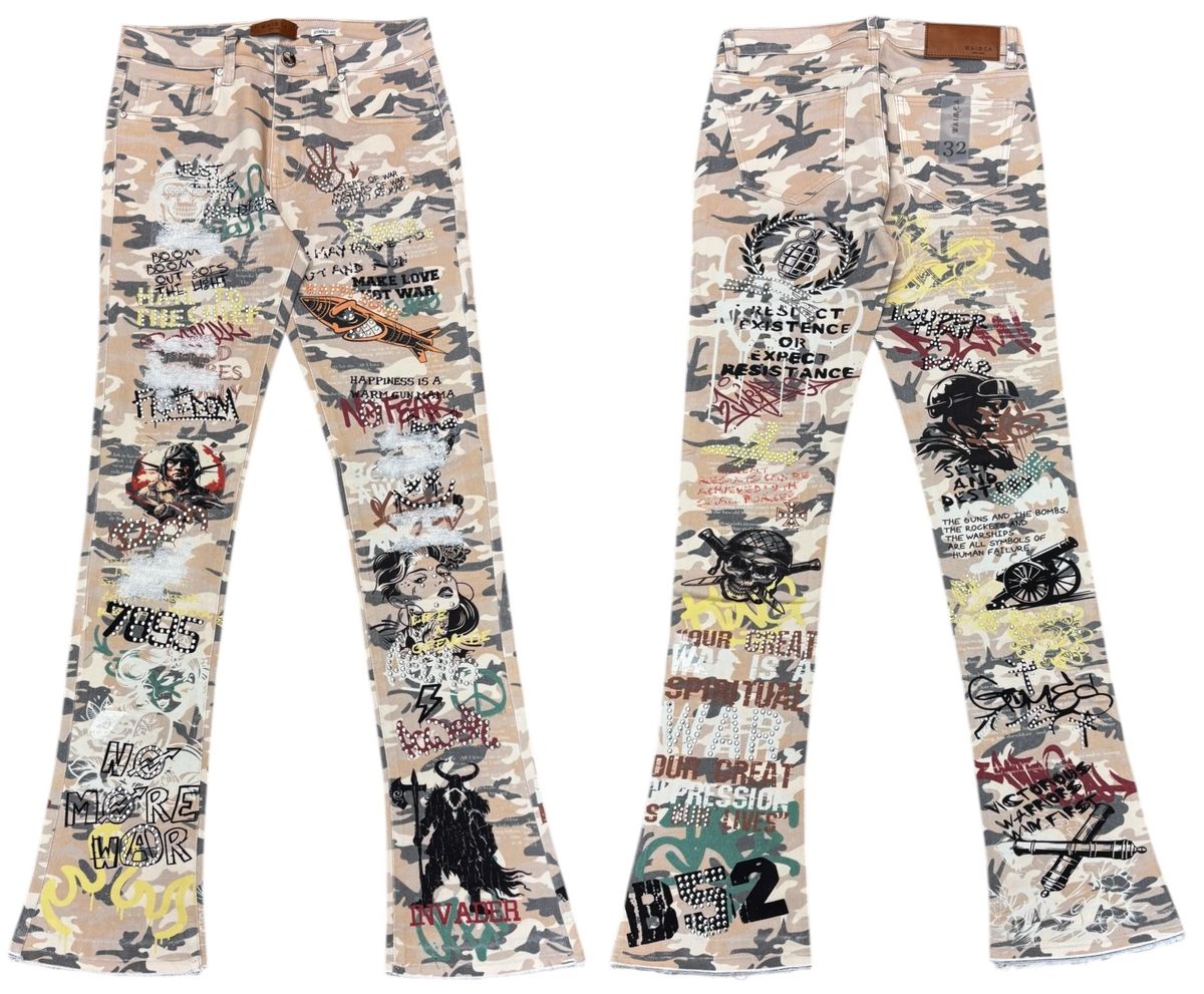 Make Love Not War Stacked Jeans (Bone Camo)