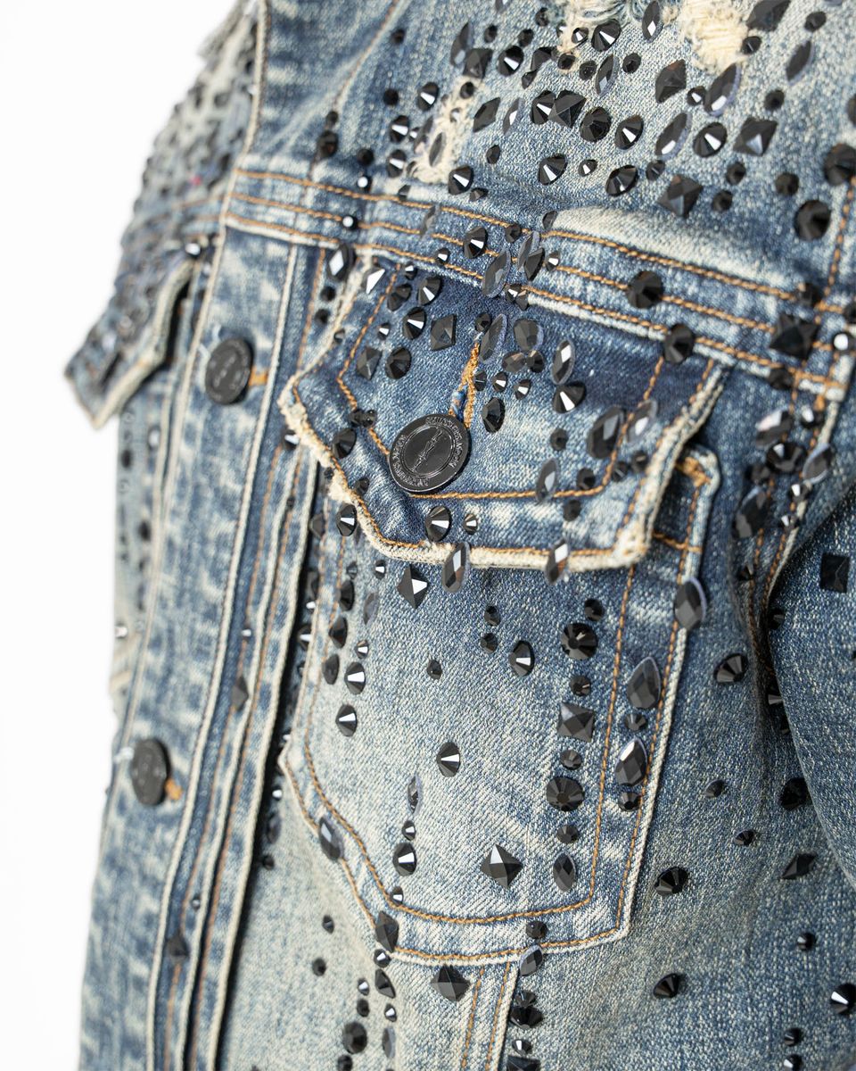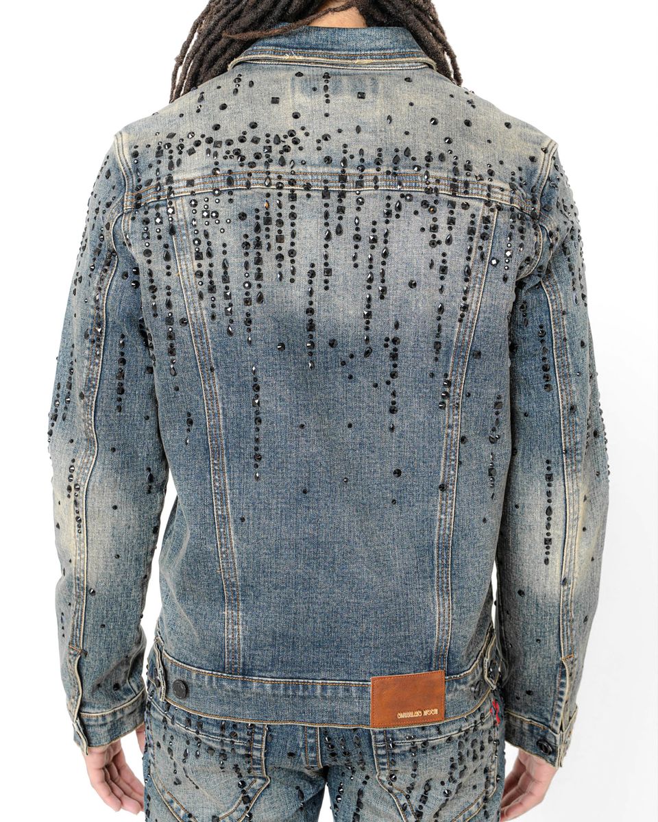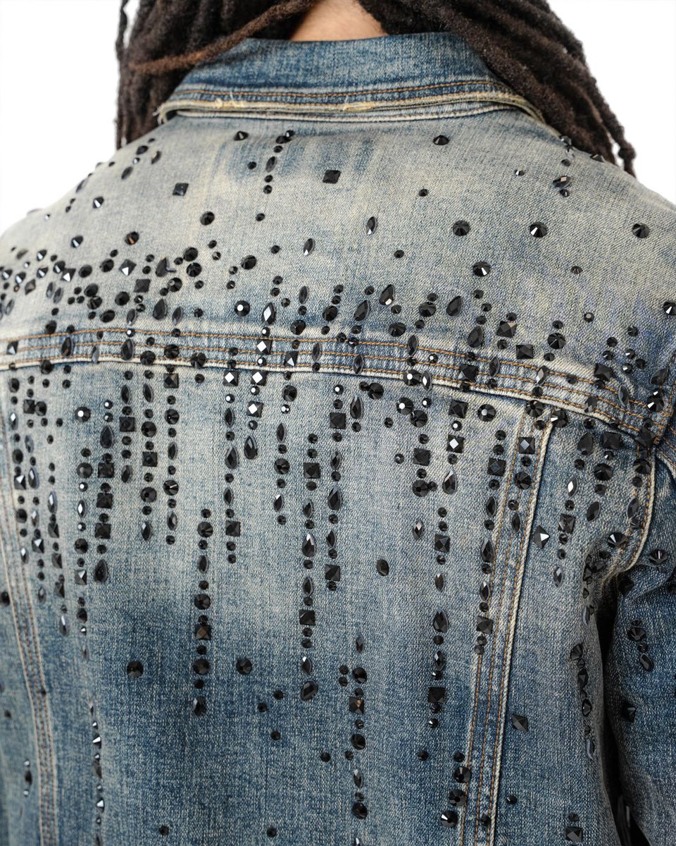 Crystal Drop Cropped Denim Jacket (Indigo)