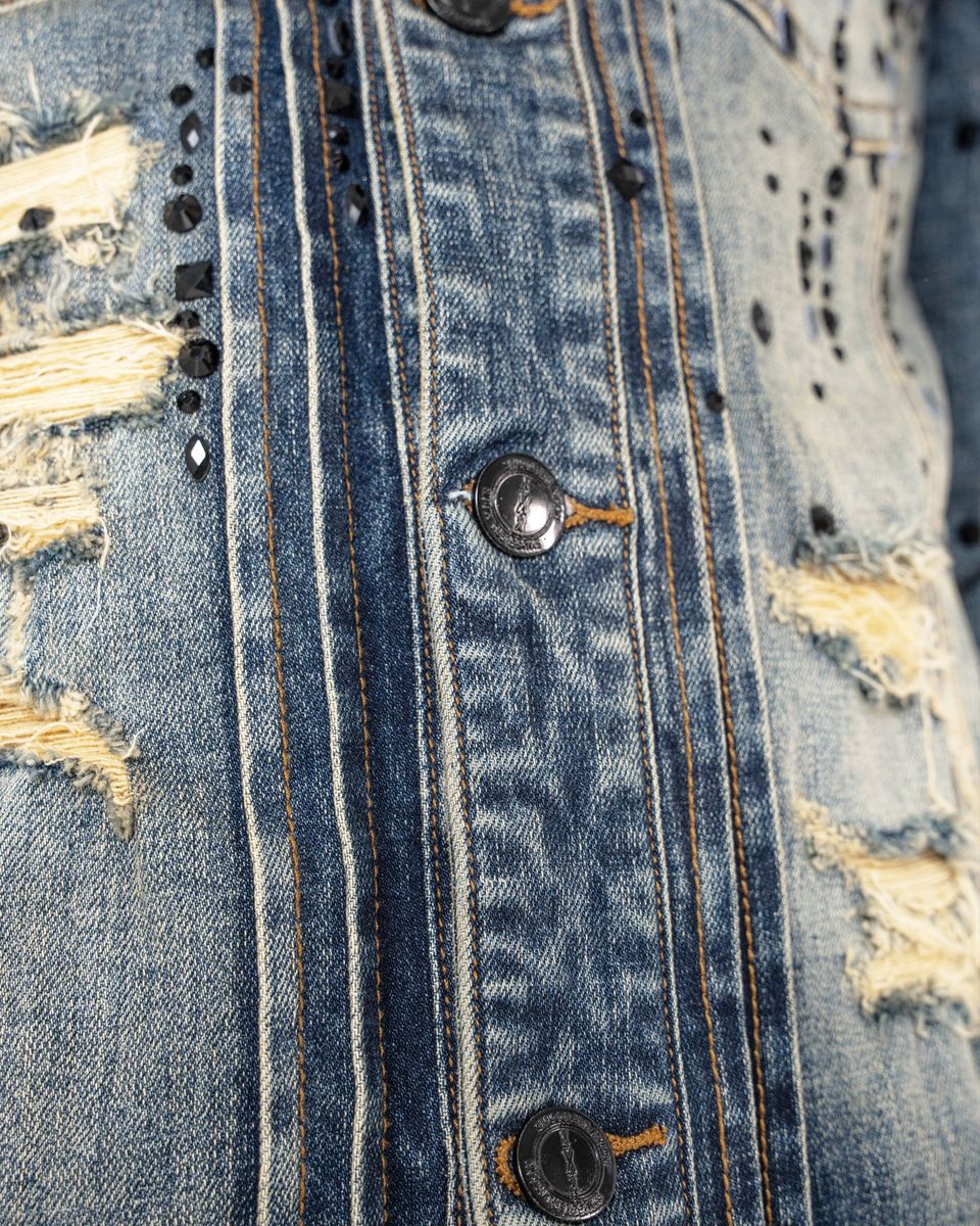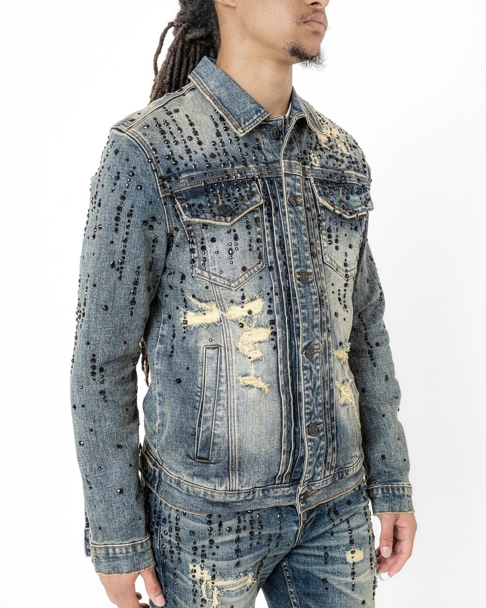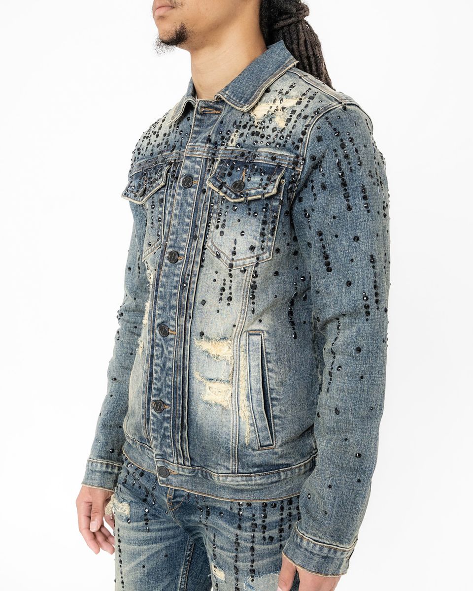 Crystal Drop Cropped Denim Jacket (Indigo)