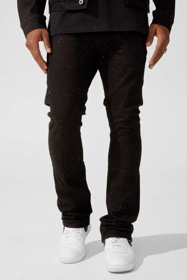 The Super Skinny Stacked Fit – Local Dealer Denim from the Martin Stacked Collection is made for the ones who keep pushing — the go-getters, the movers, the ones who stay active while looking sharp. Dropping in Black and White, this denim features premium rhinestone embellishments that catch light like motivation in motion. The stacked silhouette gives you that elevated, modern edge, while the shine adds a layer of confidence you can’t fake. It’s not about flexing — it’s about showing up and standing out. Cut in our Super Skinny Stacked fit, these jeans fit close through the leg before stacking effortlessly at the ankle, landing clean over sneakers or boots. The stretch fabric keeps it all-day wearable without losing shape. Whether you rock them solo or complete the full set with the matching Local Dealer Trucker Jacket, this is denim built for those who make their own luck — one grind, one win, one move at a time