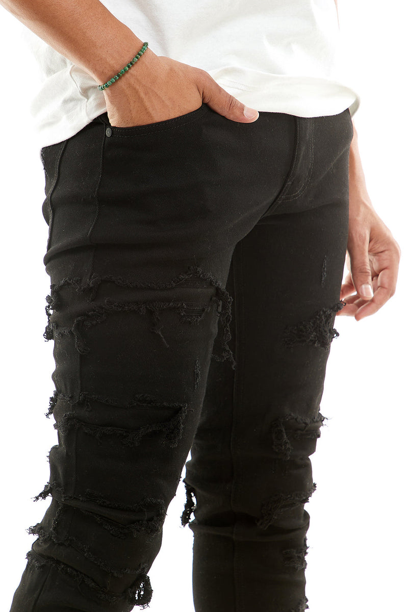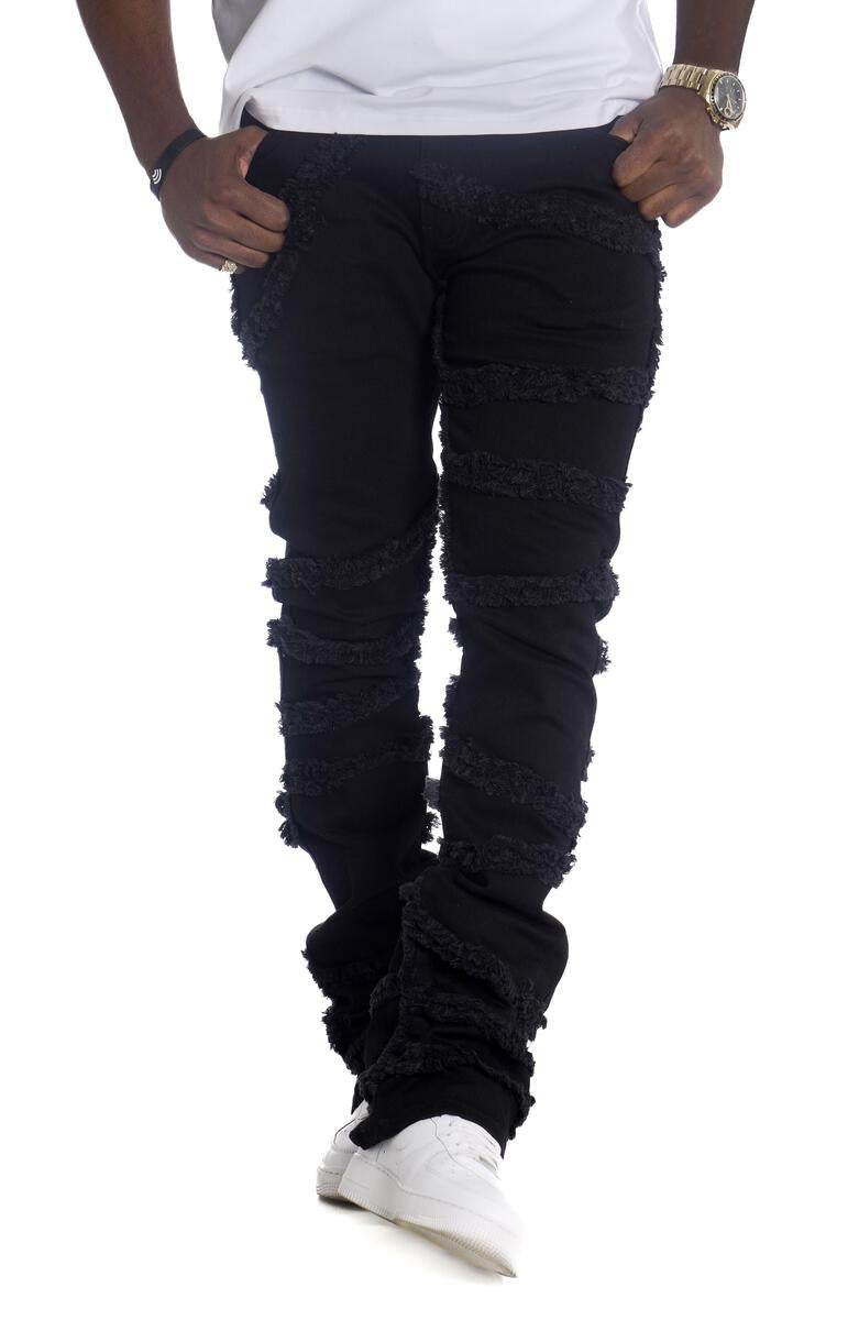 Knee Rip Stacked Denim Jeans - Jet Black Wash
