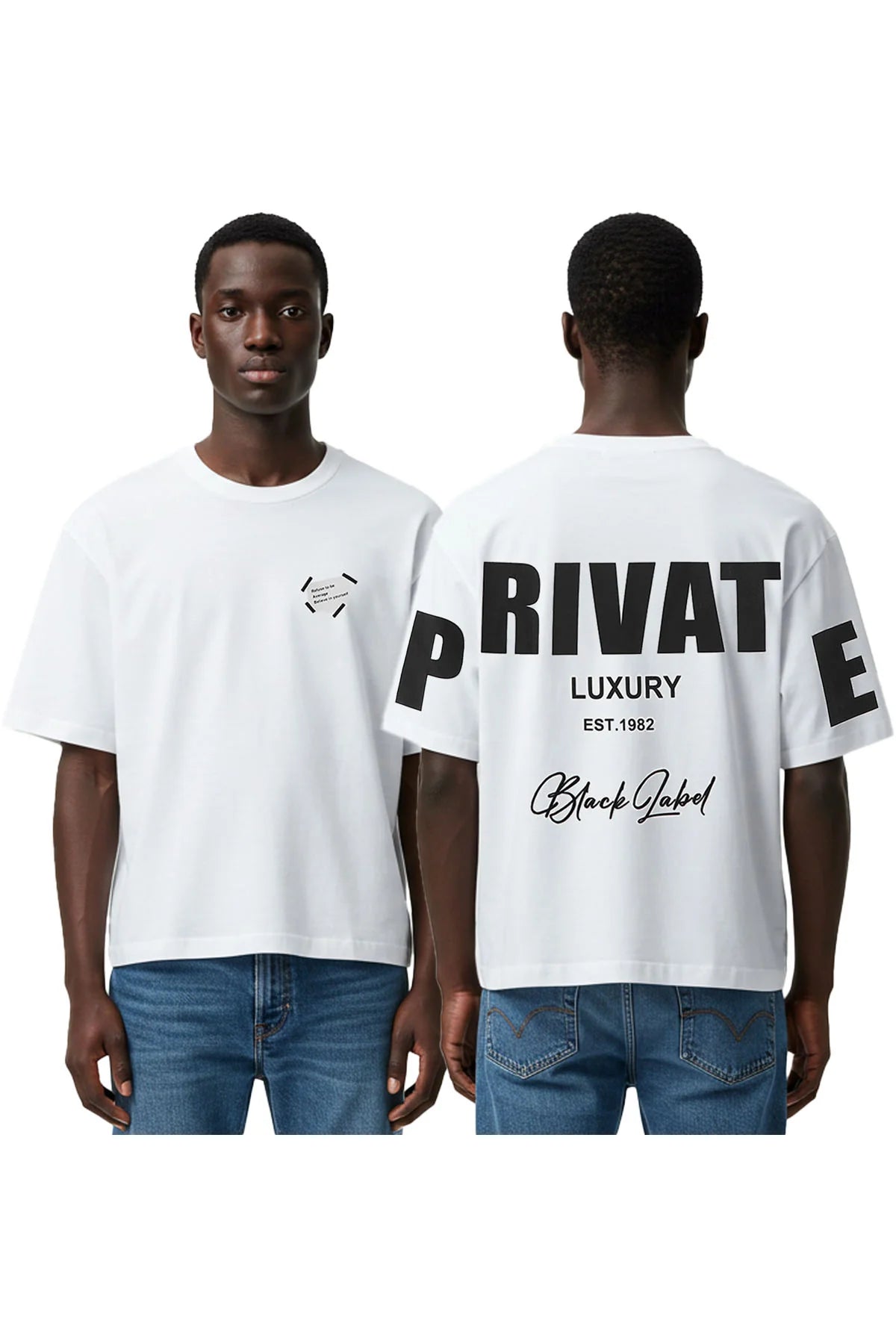 Men Black Label "PRIVATE" Oversize T-Shirt (White)