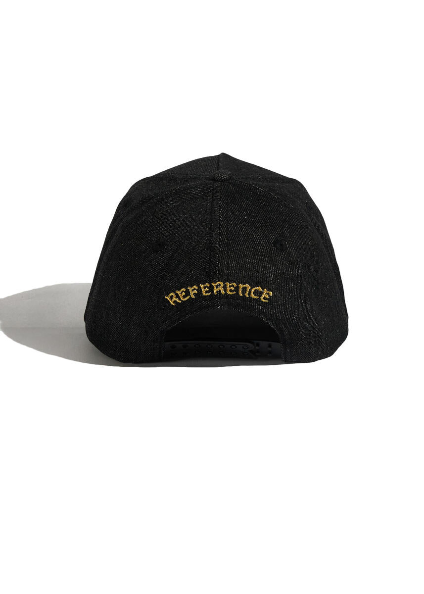 - Gold Thread "REFERENCE" Embroidery Arched Over Back of Hat