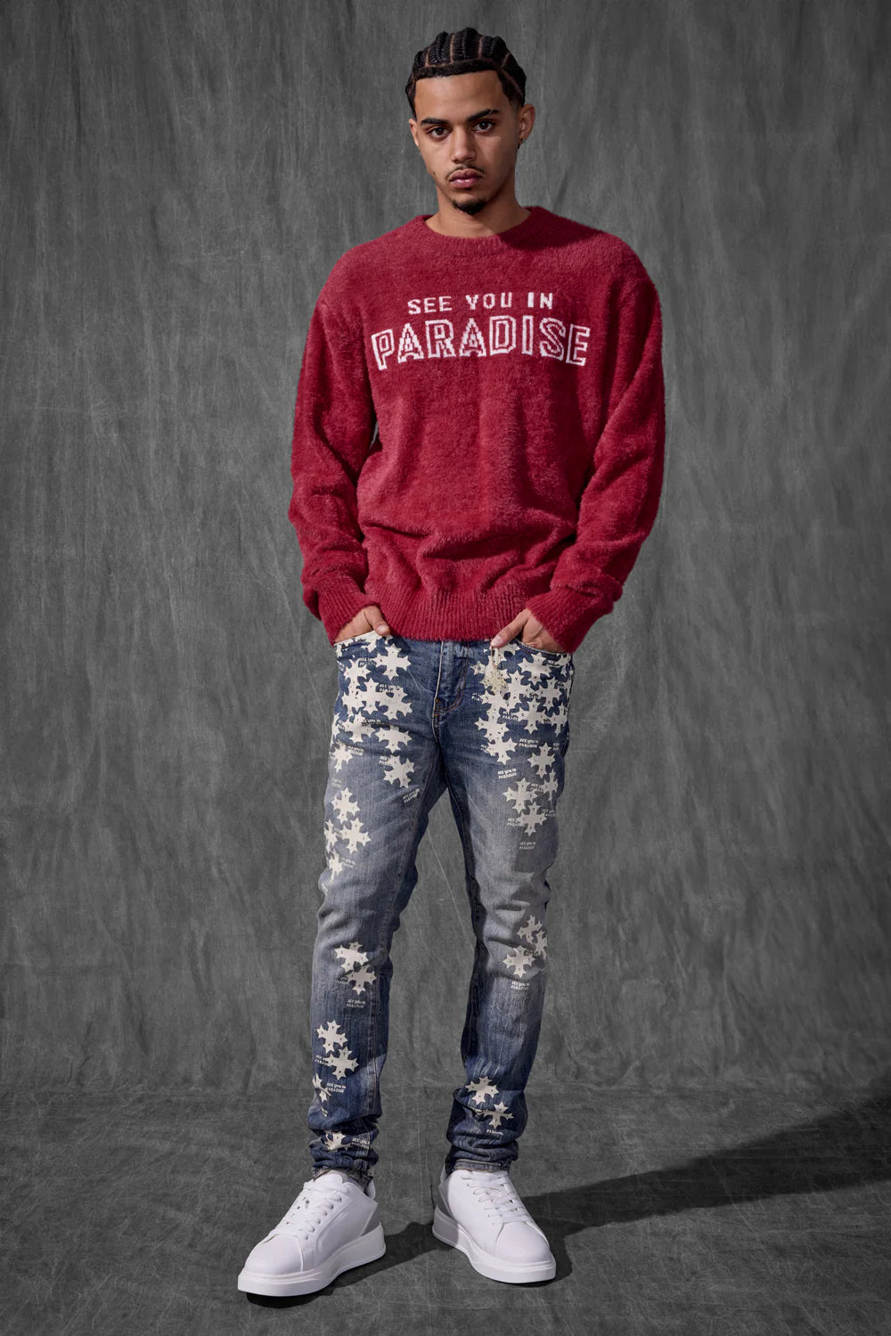 - "See You In Paradise" embroidered details on front chest